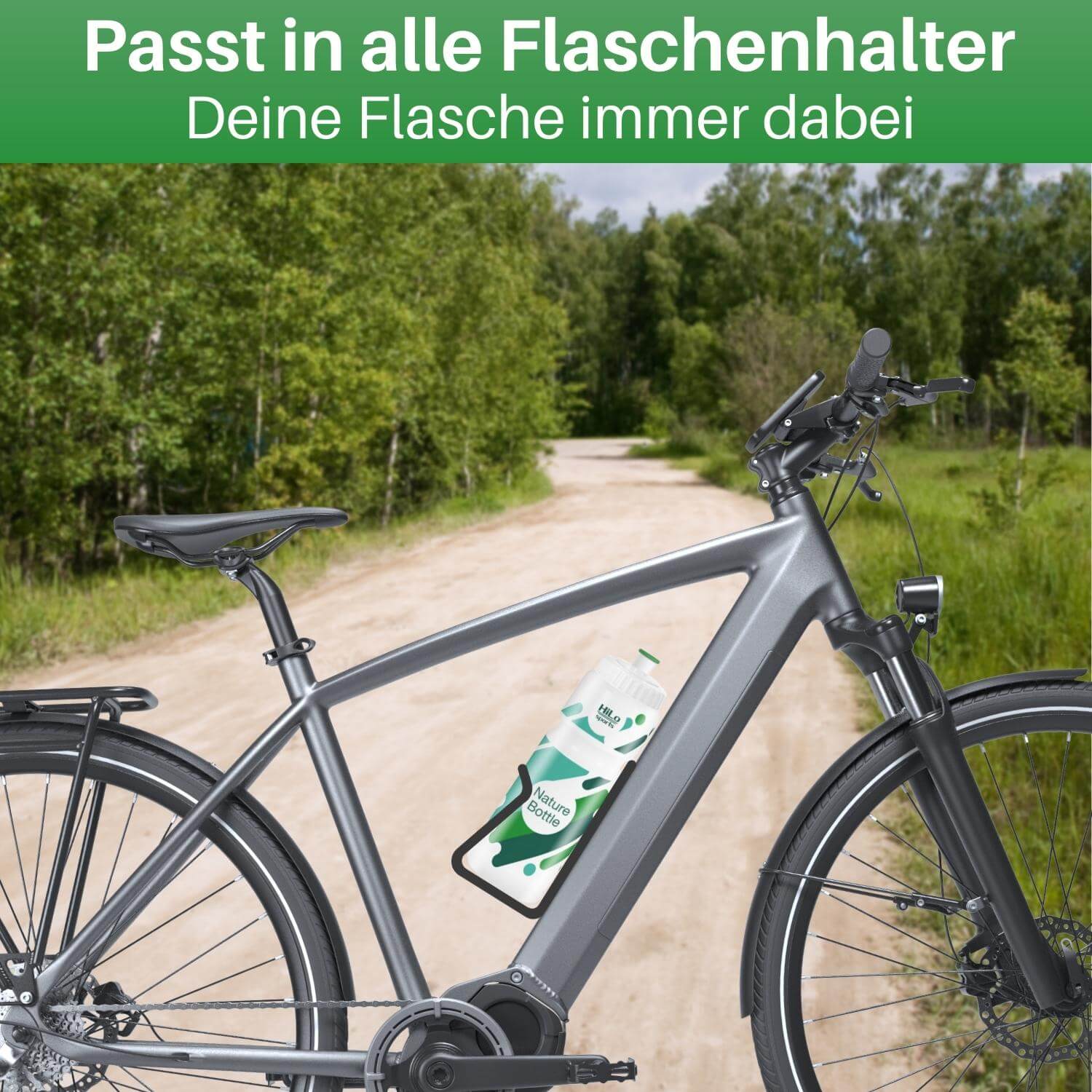 Passt dazu Vervollständige deine Auswahl: HiLo sports - Fahrradzubehör aus Leidenschaft… … ist der Grundgedanke unserer Marke. Die Produkte sind mit Liebe zum Detail ausgearbeitet und überzeugen durch einzigartige Funktionalität. Dank 100% Direktvertrieb ist HiLo sports günstiger als alteingesessene Markenprodukte.- Die beiden Gründer Rebekka und Sebastian FAQ - Häufig gestellte Fragen Wird die Fahrrad Flasche ohne BPA hergestellt?Ja, die Nature Bottle Rad ist komplett ohne Bisphenol A (BPA) und ohne Phthalate hergestellt.Ist die Trinkflasche komplett frei von Weichmachern?Ja, natürlich. Die Flasche ist gemäß den EU-Richtlinien komplett frei von Weichmachern.Ist die Trinkflasche für alle Flaschenhalter geeignet?Egal ob Rennrad, Mountainbike, Trekking-, Touren- oder Cityrad. Die Fahrradflasche ist für alle Trinkflaschenhalter geeignet.Ist die Fahrrad Trinkflasche für Kinder geeignet?Ja, es gibt die Fahrrad Trinkflasche als 750ml Flasche und auch als 500ml Rad Trinkflasche für Kinder. Rohstoff Zuckerrohr Bei Standard Kunststoff Flaschen wird Erdöl als Rohstoff verwendet. Im Gegensatz dazu nutzen wir bei der HiLo sports Rad Flasche Zuckerrohr. Dieser hat viele Vorteile. Er ist nachwachsend, natürlich und absorbiert CO2. Produktion in Europa Die Fahrrad Trinkflasche wird in der EU, in Belgien produziert. Sie ist natürlich frei von BPA, Weichmachern und anderen Schadstoffen. Das wird durch regelmäßige Kontrollen in unabhängigen Prüflaboren gesichert. Dichte Fahrradflasche Durch den 2-Stufen Verschluss ist die Flasche dicht. Auf Stufe 1 ist die Rad Trinkflasche leicht verschlossen und einfach zu öffnen. Auf Stufe 2 ist sie maximal verschlossen, schwerer zu öffnen und damit auslaufsicher. Umweltfreundlich mit Hausverstand Wir verzichten grundsätzlich auf Kunststoff Verpackungen am Produkt. Das Fahrradzubehör wird in Versandkartons ohne Füllmaterial direkt zu dir gesendet. Zusätzlich wird nur Papier-Klebeband verwendet. Schneller Versand vom eigenen Lagerhaus Unsere fleißigen Versandmitarbeiter prüfen deine Bestellung gewissenhaft und verpacken sie sorgfältig. Von unserem Standort in Vorarlberg, Österreich wird dein Paket umgehend versendet. Firma aus Österreich Jedes einzelne Produkt wird mit Liebe zum Detail in Österreich ausgearbeitet. Vom HiLo sports Team in der Praxis getestet und sobald es optimal ist auf den Markt gebracht. Gemäß dem Motto: Von Radfahrern für Radfahrer. Fahrrad Trinkflasche aus Zuckerrohr Die HiLo sports Nature Bottle wird aus dem natürlichen Rohstoff Zuckerrohr hergestellt. Zuckerrohr zu nutzen hat einige Vorteile: Er absorbiert CO2 und es werden keine fossilen Rohstoffe für die Produktion benötigt. Zudem kommt Zuckerrohr natürlich in der Natur vor. Aus dem Zuckerrohr wird im weiteren Schritt nachhaltige Energie, nämlich Ethanol produziert. Aus dem grünen Ethanol entstehen danach die umweltbewussten Fahrradflaschen. Ein weiterer wichtiger Punkt für die Umwelt ist, dass die Nature Bottle recyclebar ist. Im Gegenzug zu herkömmlichen Kunststoff Trinkflaschen, die nicht recycelt werden können. Standard Kunststoffflaschen werden nämlich aus dem Rohstoff Erdöl produziert. Das Beste an der Öko Fahrrad Trinkflasche: Die umweltbewusste Fahrradflasche hat in der Nutzung keinerlei Nachteile gegenüber Standard Kunststoff Trinkflaschen. Trinkflasche ohne Weichmacher Nach jeder Produktion wird die HiLo sports Rad Flasche in einem unabhängigen Prüflabor getestet. Dabei wird sie auf etwaige Schadstoffe wie BPA, Bisphenol und andere Weichmacher geprüft. Nur wenn sie zu 100% den deutschen Richtlinien entspricht, darf sie verkauft werden. Das machen wir gerne, denn deine Gesundheit hat oberste Priorität. Die Nature Bottle Rad Flasche wird in der EU, in Belgien produziert. Dort werden die Flaschen unter strengsten Richtlinien hergestellt und anschließend im Labor getestet. Erst wenn wir die Bestätigung vom Labor haben, dass alle Richtlinien zum Verkauf in Deutschland eingehalten wurden, gehen die Flaschen an unsere Kunden. Damit stellen wir sicher, dass die Flaschen gesund, komplett BPA frei und ohne Weichmacher sind. Wir sehen uns ganz klar in der Verantwortung unseren Kunden nur die beste Qualität zu liefern. Komplett auslaufsichere Rad Trinkflasche Lange haben wir nach einer hochwertigen Rad Trinkflasche gesucht, die zudem unseren strengen Qualitätskriterien entspricht. Es war gar nicht so einfach eine tolle Sportflasche zu finden, die gut aussieht und zudem komplett dicht ist. Doch die lange Suche nach der perfekten Trinkflasche hat sich ausgezahlt. Die Nature Bottle sieht gut aus und entspricht all unseren Anforderungen an eine richtig gute Rad Trinkflasche. Das wichtigste Qualitätsmerkmal ist, dass sie maximal auslaufsicher sein muss. Das wird durch den 2-Stufen Verschluss gewährleistet. Auf Stufe 2 ist der Trink-Noozle komplett verschlossen und es kann keine Flüssigkeit auskommen, bedeutet die Flasche ist maximal dicht. Für alle die während dem Radfahren schneller trinken möchten, gibt es zudem die Stufe 1. Auf Stufe 1 ist der Trink-Noozle nur leicht verschlossen, bedeutet du kannst ihn einfach mit den Zähnen öffnen und schnell trinken. Spülmaschinenfeste Sport Trinkflasche Du kannst die Flasche problemlos im Geschirrspüler reinigen. Sie ist für die Reinigung in der Spülmaschine bei bis zu 50°C geeignet. Durch den breiten Flaschenhals ist auch eine hygienische Reinigung von Hand problemlos möglich. Vor und nach jedem Gebrauch empfehlen wir die Flasche kurz mit lauwarmem Wasser auszuspülen. Zusätzlich kannst du die Trinkflasche nicht nur fürs Fahrrad fahren nutzen. Sie ist auch perfekt für andere Sportarten wie das Fitness Training und das Training im Gym geeignet. Durch das großzügige Volum von 0,75 l hast du genügend Wasser für eine Trainingseinheit mit dabei. Die Trinkflasche wird dir beim Sport ein toller Begleiter sein. Wenn du schnell trinken möchtest, kannst du die Sport Trinkflasche einfach que