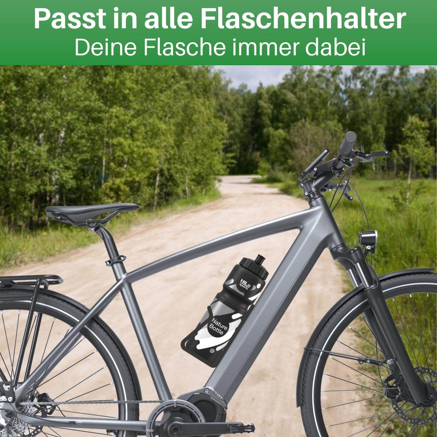 Passt dazu Vervollständige deine Auswahl: HiLo sports - Fahrradzubehör aus Leidenschaft… … ist der Grundgedanke unserer Marke. Die Produkte sind mit Liebe zum Detail ausgearbeitet und überzeugen durch einzigartige Funktionalität. Dank 100% Direktvertrieb ist HiLo sports günstiger als alteingesessene Markenprodukte.- Die beiden Gründer Rebekka und Sebastian FAQ - Häufig gestellte Fragen Kann ich die Trinkflasche in der Spülmaschine waschen?Ja, auf jeden Fall. Du kannst sie bei bis zu 50°C in die Spülmaschine geben. Es genügt auch, wenn du sie vor und nach der Nutzung mit lauwarmem Wasser ausspülst. Vor allem wenn du nur reines Wasser aus der Trinkflasche trinkst.Wie groß ist der Durchmesser der Öffnung der Radflasche?Der Durchmesser am Flaschenhals beträgt 5cm. Durch diesen großen Durchmesser kannst du die Rad Trinkflasche einfach und hygienisch reinigen.Gibt es diese Trinkflasche auch in einer anderen Größe?Ja, die Trinkflasche gibt es auch als 500ml große Variante. Produktion in Europa Die Fahrrad Trinkflasche wird in der EU, in Belgien produziert. Sie ist natürlich frei von BPA, Weichmachern und anderen Schadstoffen. Das wird durch regelmäßige Kontrollen in unabhängigen Prüflaboren gesichert. Rohstoff Zuckerrohr Bei Standard Kunststoff Flaschen wird Erdöl als Rohstoff verwendet. Im Gegensatz dazu nutzen wir bei der HiLo sports Radflasche Zuckerrohr. Dieser hat viele Vorteile. Er ist nachwachsend, natürlich und absorbiert CO2. Leicht quetschbar Die Fahrradflasche ist leicht zu quetschen. Das verschafft dir den Vorteil, dass du während dem Radfahren einfach trinken kannst. Und nicht extra stehen bleiben musst, um einen Schluck Wasser zu trinken. Umweltfreundlich mit Hausverstand Wir verzichten grundsätzlich auf Kunststoff Verpackungen am Produkt. Das Fahrradzubehör wird in Versandkartons ohne Füllmaterial direkt zu dir gesendet. Zusätzlich wird nur Papier-Klebeband verwendet. Schneller Versand vom eigenen Lagerhaus Unsere fleißigen Versandmitarbeiter prüfen deine Bestellung gewissenhaft und verpacken sie sorgfältig. Von unserem Standort in Vorarlberg, Österreich wird dein Paket umgehend versendet. Firma aus Österreich Jedes einzelne Produkt wird mit Liebe zum Detail in Österreich ausgearbeitet. Vom HiLo sports Team in der Praxis getestet und sobald es optimal ist auf den Markt gebracht. Gemäß dem Motto: Von Radfahrern für Radfahrer. Fahrrad Trinkflasche aus Rohstoff Zuckerrohr Die HiLo sports Nature Bottle in schwarz wird aus Zuckerrohr hergestellt. Als Rohstoff Zuckerrohr zu nutzen hat eine Hand voll Vorteile: Zuckerrohr absorbiert CO2, es werden keine fossilen Rohstoffe (wie Erdöl) für die Produktion benötigt und zudem kommt Zuckerrohr in der Natur vor. Aus dem geernteten Zuckerrohr wird anschließend nachhaltige Energie, nämlich Ethanol produziert. Aus diesem sogenannten grünen Ethanol entstehen danach die umweltbewussten Fahrradflaschen. Ein wichtiger Punkt für die Umwelt ist, dass die Nature Bottle recyclebar ist. Standard Kunststoffflaschen werden nämlich aus dem Rohstoff Erdöl produziert. Diese sind somit auch nicht recyclebar. Das Beste an der Öko Fahrrad Trinkflasche: Die umweltbewusste Fahrradflasche hat in der Nutzung keinerlei Nachteile gegenüber Standard Kunststoff Trinkflaschen. In unabhängigen Laboren geprüft Nach der Herstellung wird die HiLo sports Rad Flasche in unabhängigen Prüflaboren getestet. Dabei wird sie auf das Vorhandensein von Schadstoffen wie BPA, Bisphenol, Phthalaten und anderen Weichmacher geprüft. Erst wenn sie den deutschen Richtlinien für das Lebensmittelgesetz entspricht darf sie verkauft werden. Diese Laborprüfung lassen wir sehr gerne durchführen, denn die Gesundheit unserer Kunden steht für uns an allererster Stelle. Die Nature Bottle wird in Belgien produziert. Dort werden die Fahrrad Flaschen unter strengsten Richtlinien hergestellt und anschließend ins Labor zur Testung gebracht. Wenn der Prüfbericht vom Labor vorliegt, werden die Trinkflaschen zum Verkauf freigegeben. Damit stellen wir sicher, dass die Fahrradflaschen komplett frei von BPA und frei von Weichmachern sind. Wir sehen uns in der Verantwortung unseren Kunden nur die beste Qualität zu liefern. Dichte Rad Trinkflasche Für die Suche nach der perfekten Rad Trinkflasche haben wir uns viel Zeit genommen. Uns war wichtig, dass die Trinkflasche komplett auslaufsicher ist und unseren strengen Qualitätsansprüchen entspricht. Schlussendlich haben wir in Belgien den perfekten Hersteller für die HiLo sports Nature Bottle Sport Trinkflasche gefunden. Gemeinsam mit unserem Design Team haben wir dann ein tolles Druck Muster entwickelt. Schlussendlich sieht die Nature Bottle nicht nur gut aus, sondern entspricht auch all unseren Anforderungen an eine richtig gute Rad Trinkflasche. Das wichtigste Qualitätsmerkmal ist, dass sie maximal auslaufsicher ist. Diese Funktion wird durch den 2-Stufen Verschluss gewährleistet. Auf Stufe 2 ist der Trink-Noozle komplett verschlossen und etwas schwerer aufzubekommen. Dafür kann keine Flüssigkeit auskommen, die Flasche ist somit maximal dicht. Auf Stufe 1 ist der Trink-Noozle der Rad Trinkflasche nur leicht verschlossen und einfach aufzubekommen. Dafür kann der Verschluss auf der Fahrt einfach geöffnet werden und du kannst schneller trinken. Auf dieser Stufe ist die Flasche nicht komplett dicht. Sportflasche für die Spülmaschine geeignet Die 0,75l große Radflasche ist spülmaschinenfest. Du kannst sie bei 50°C im Geschirrspüler reinigen. Zusätzlich empfehlen wir dir die Flasche jeweils vor und nach dem Gebrauch mit laufwarmem Wasser auszuspülen. Eine hygienische Reinigung von Hand ist dank des großen Flaschenhalses einfach möglich. Um die Radfalsche vor Verfärbungen zu schützen solltest du sie am Besten nur mit klarem Wasser nutzen. Fruchtsäfte könnten die Flasche verfärben. Du kannst die Sportflasche nicht nur fürs Fahrradfahren nutzen. Auch beim Fitness Training, im Gym und