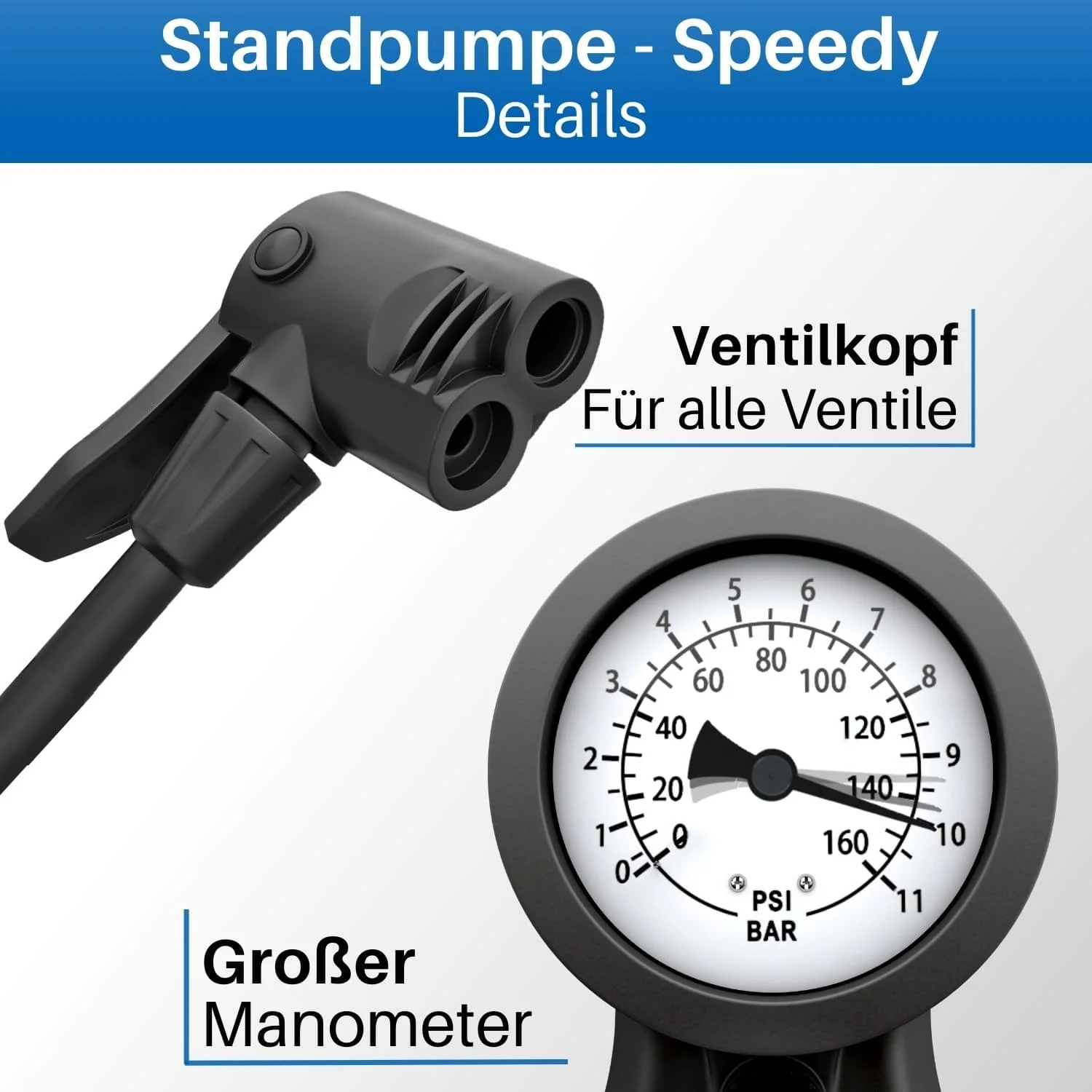 - Inhalt: 1x Standpumpe Speedy, 1x Minipumpe Comfort, 1x Ventiladapter Set
